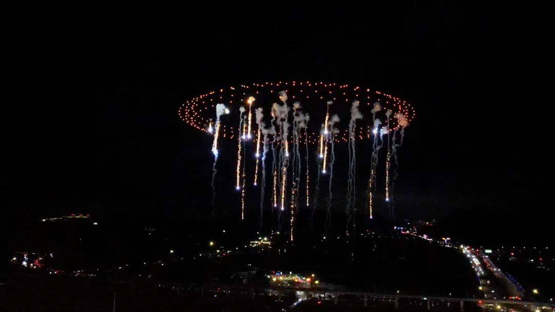 依托独一无二的8000㎡星空草坪,项目打造了极具辨识度的“草地星空音乐节”IP,邀请9组重磅音乐大咖现场表演。夜幕之下,300架无人机上演恢弘编队灯光秀,最后的“天空之门魔法阵烟花秀”交相辉映,带来前所未来的感官盛宴。